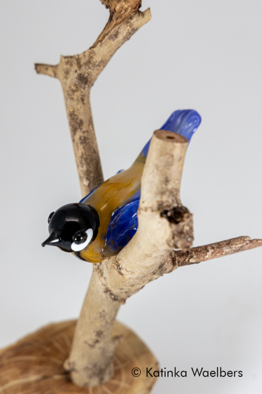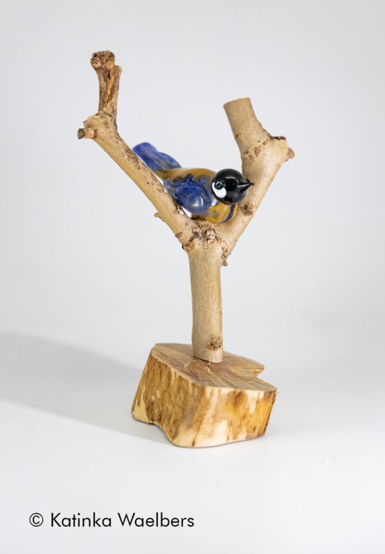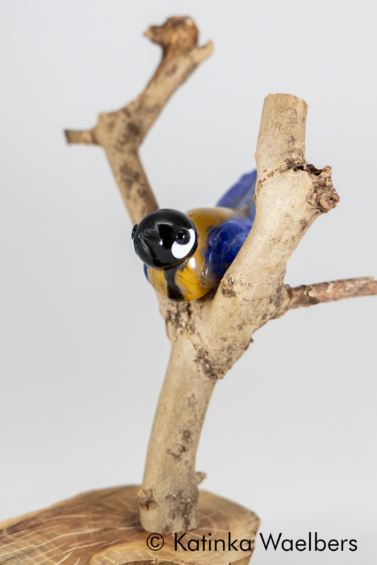 OverzichtNet echt, dit zeer schattige koolmeesje op een houten tak. Ongeveer op ware grootte (ca 18 cm hoog) en zo ontzettend schattig!